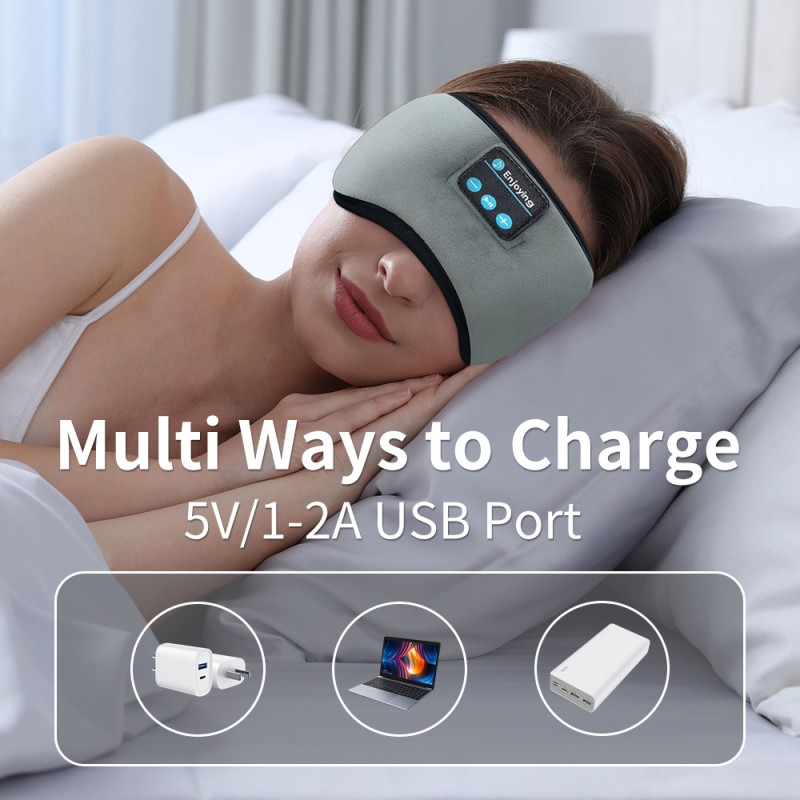 Amovible et lavable : le corps principal du masque pour les yeux Bluetooth centré en coton gris est détachable, facile à nettoyer et à maintenir hygiénique.